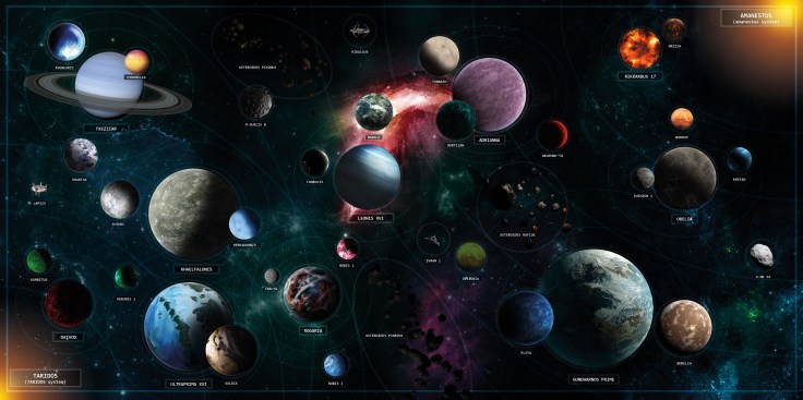 El sistema dual Keakron: Una región de la galaxia aislada durante milenios por tormentas de la disformidad y vientos solares extremos generados por los dos astros gemelos, Amanestus y Taridos. Desde que se abrió la brecha de la Cicatrix Maledictum, se estabilizó la región y empezaron a llegar las diferentes razas de la galaxia, Cada una movida por objetivos propios y muy dispares.