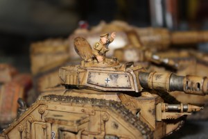 Cualquiera puede vociferar órdenes desde radios y otros aparatos de comunicaciones. Pero cuantos tienen las peltoas (de acero) de gritar las órdenes desde la torreta de su Leman Russ a la vista de todos?