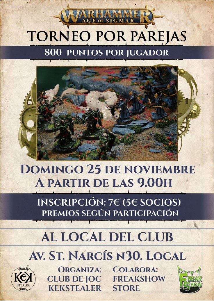 Primer Torneo por parejas de Warhammer: Age of Sigmar, organizado por el Club de Joc Kekstealer, con la colaboración de Freakshow Store.