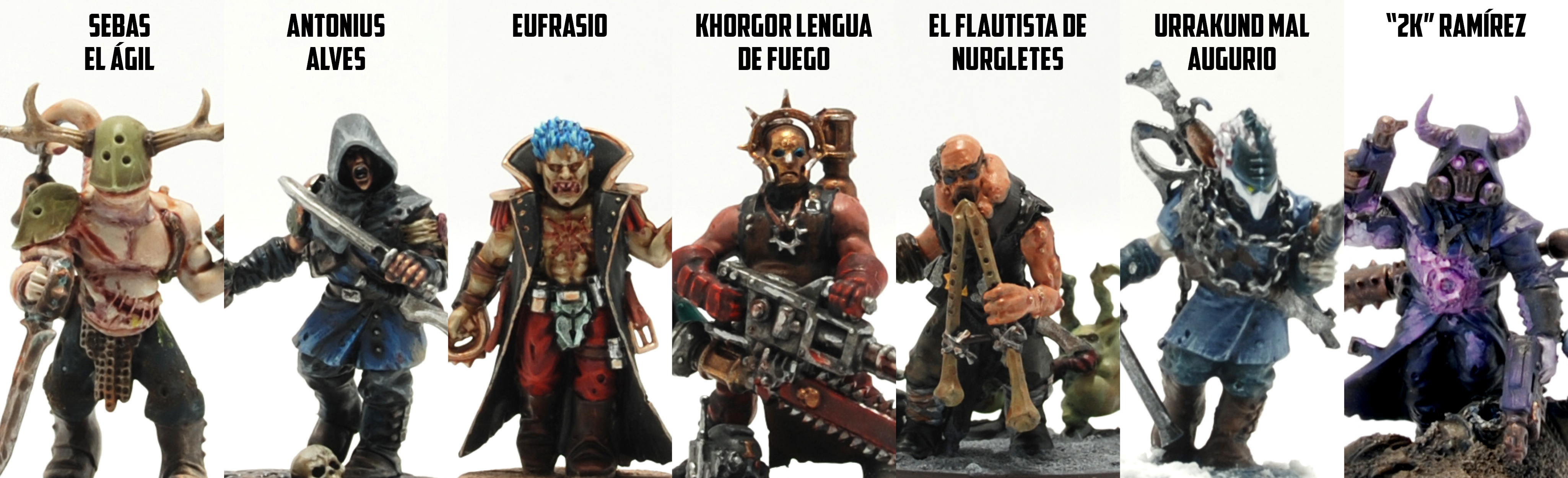 Siete cultistas han salido de sus escondites para defender sus cultos. Desde infames seguidores de los dioses oscuros a fieles al culto imperial, los participantes han lucido miniaturas espectaculares, con conversiones muy originales y muy buena pintura. Todo esto acompañado de unas líneas de trasfondo que le dan carácter y personalidad a las miniaturas. Toda una gozada.