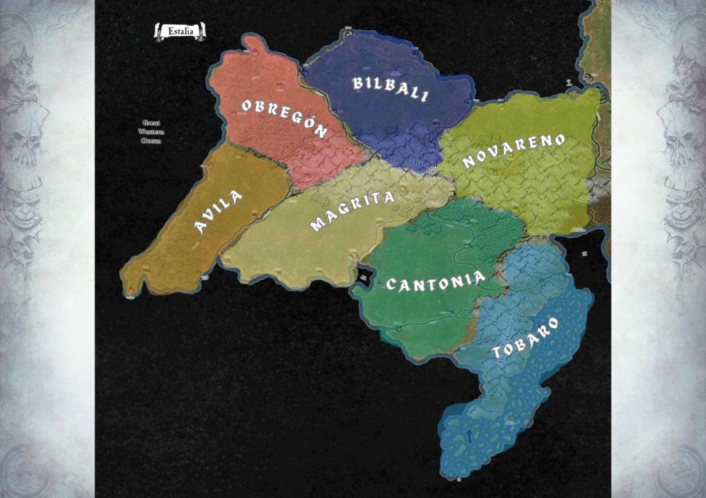 Cada taula de joc representarà una regió d’Estalia, en acord amb el tipus d’escenografía representada. Hi haura un número de regions en funcció dels jugadors, equivalent a la meitat de jugadors.