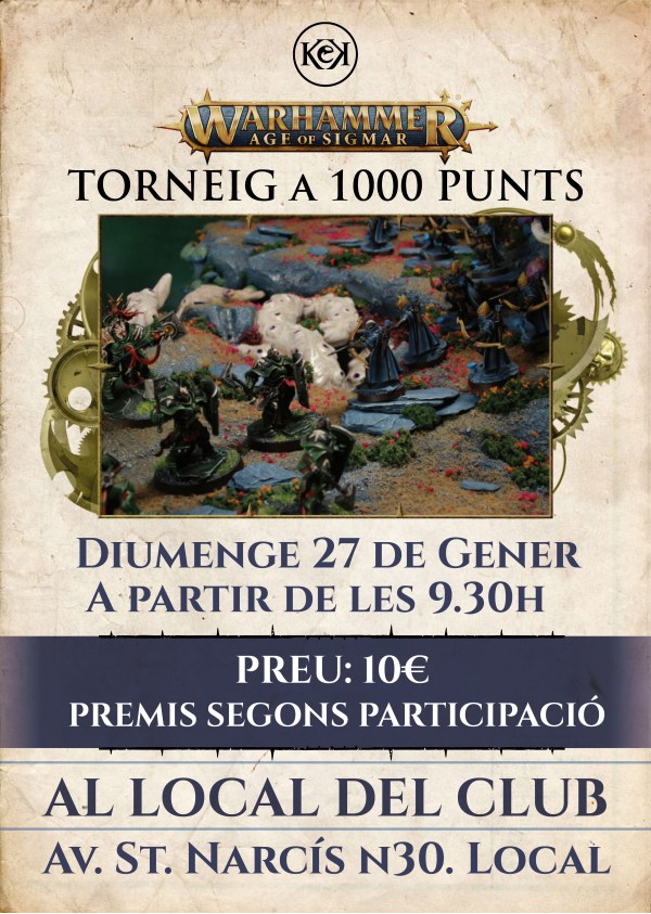 BASES Fecha, horario y lugar Primer Torneo de Warhammer: Age of Sigmar, organizado por el Club de Joc Kekstealer. El torneo se llevará a cabo en el local del club, en Avinguda de Sant Narcís 30 de Girona, detrás del parque central, cerca de la estación de tren. 9.30 h Llegada y recepción de los... Continue Reading →