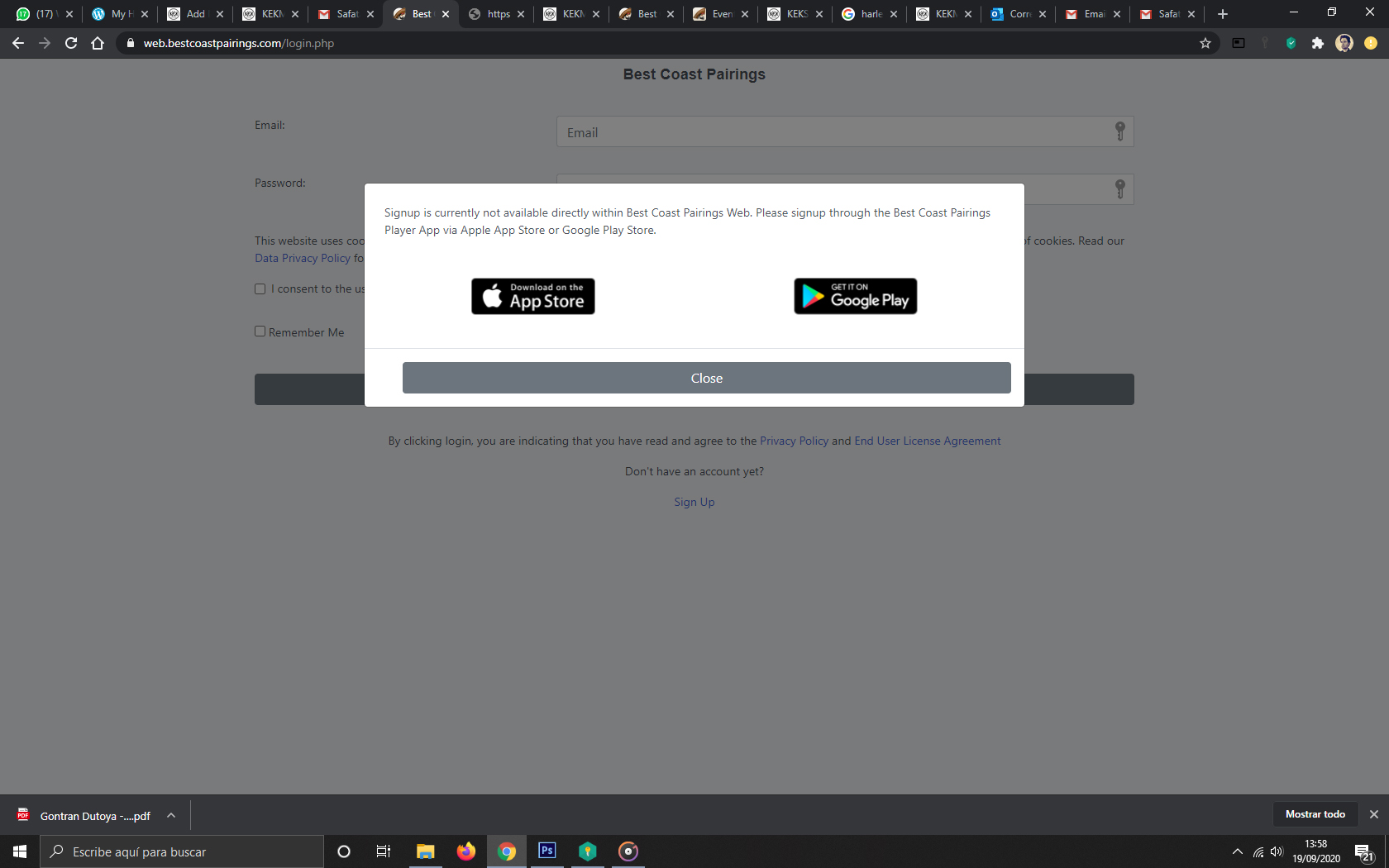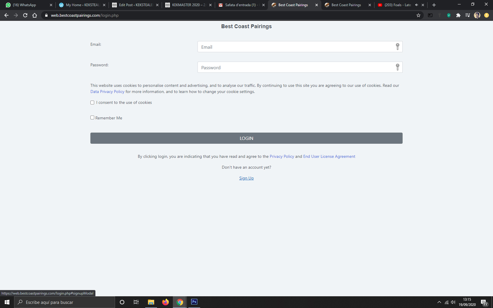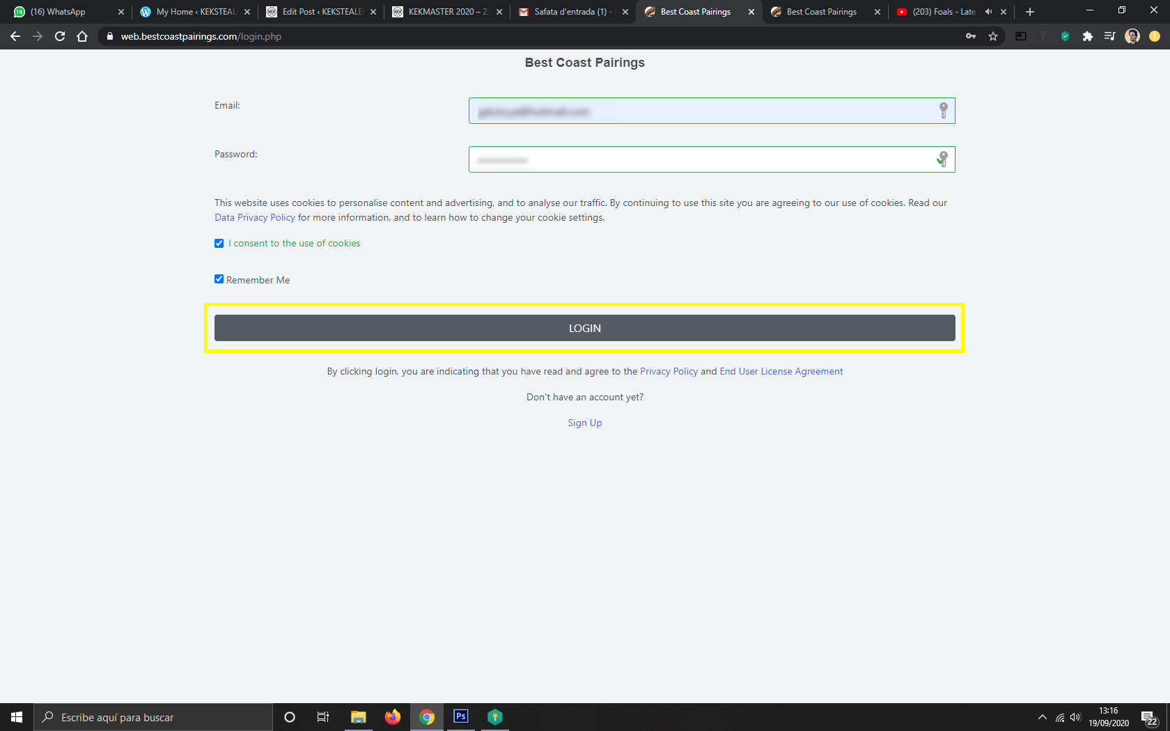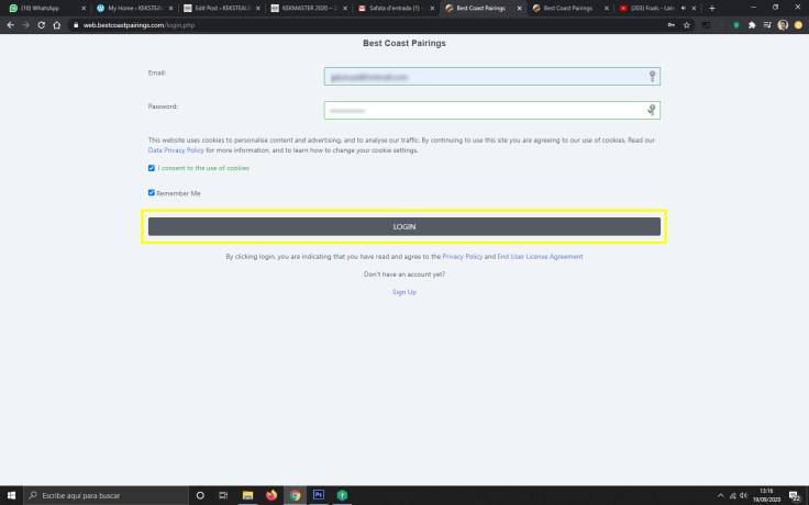 4. Para hacer Login entramos correo electrónico, contraseña, aceptamos la primera opción y podemos seleccionar la segunda si estamos en un ordenador personal para no tener que entrar los datos cada vez. En la versión APP con los datos ya entramos.