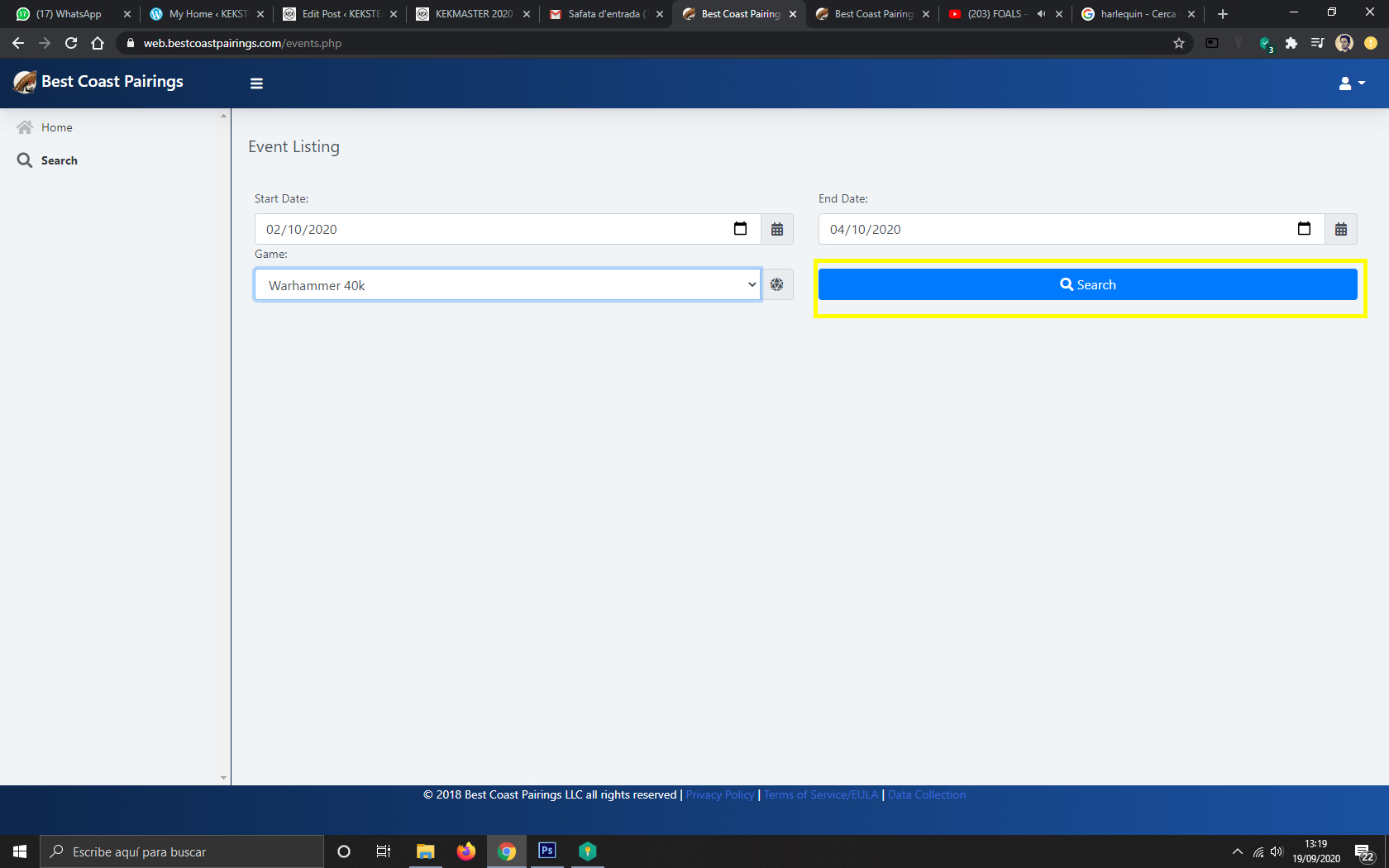 1. Entramos en la aplicación o en web: https://www.bestcoastpairings.com/
