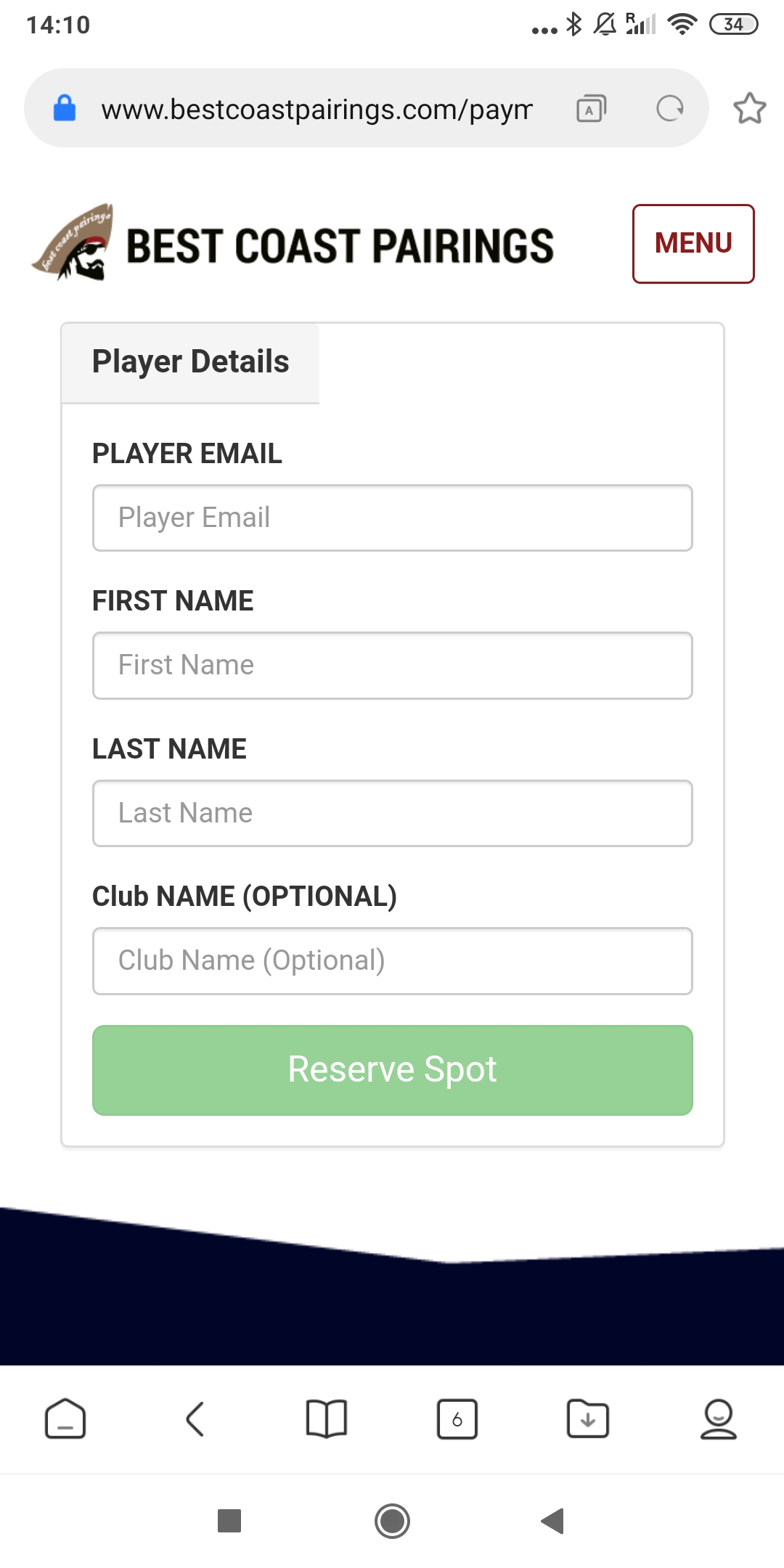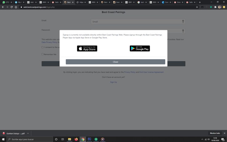 Crear una cuenta y participar en un torneo a través de Best Coast Pairings.