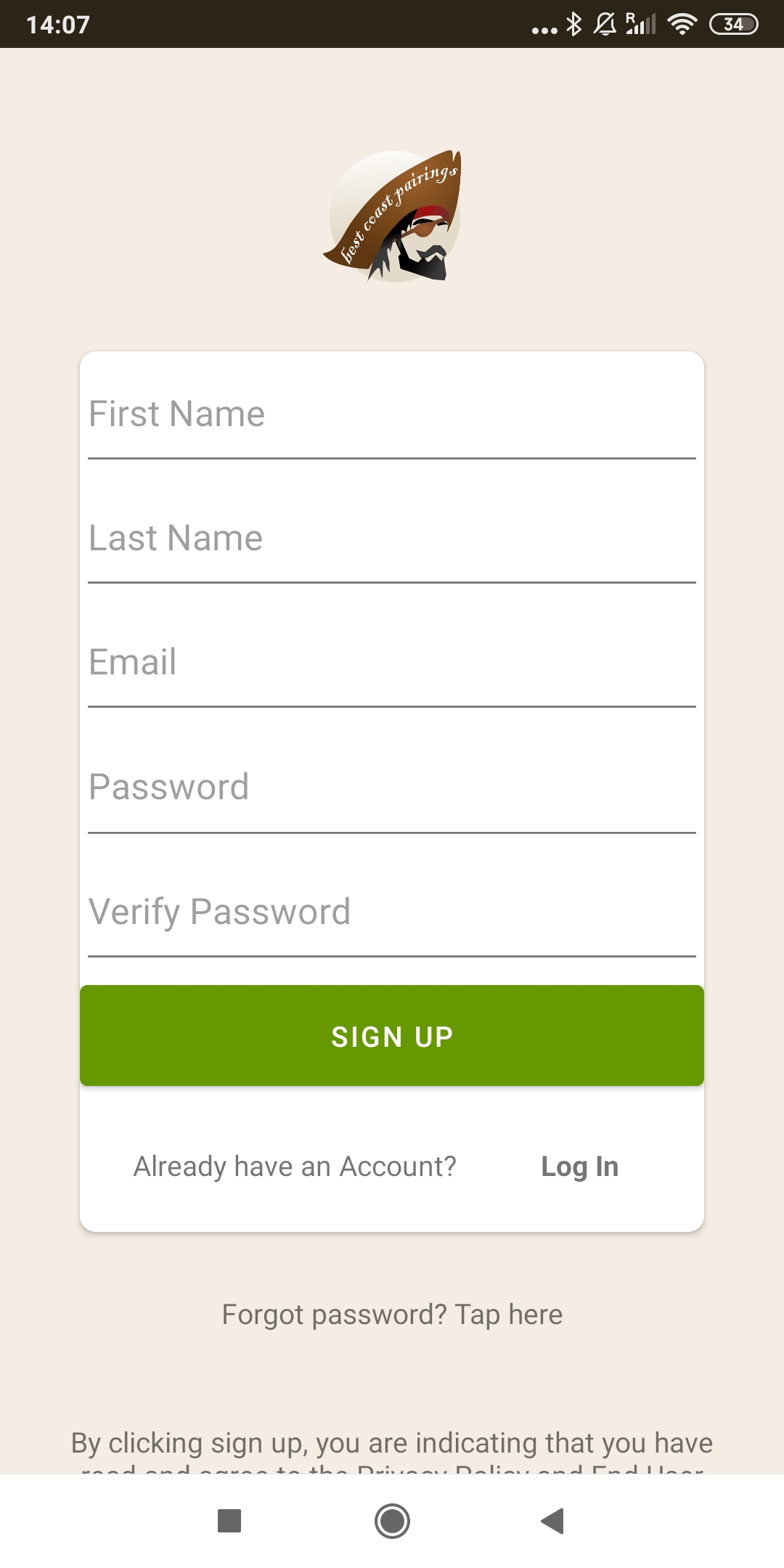Simplemente rellenamos los datos y clickamos en Sign Up