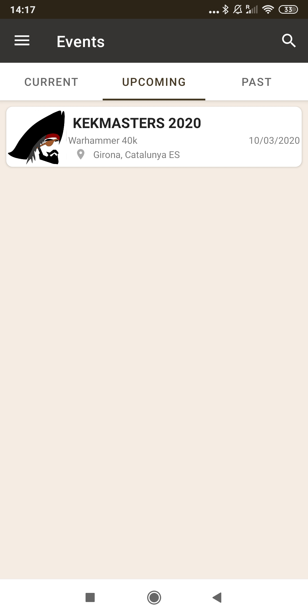 11. Si entramos en la APP, podemos ir a My Events i ver “Upcoming”, nos aparecerá el torneo al que nos hemos apuntado. Hacemos click en el evento.