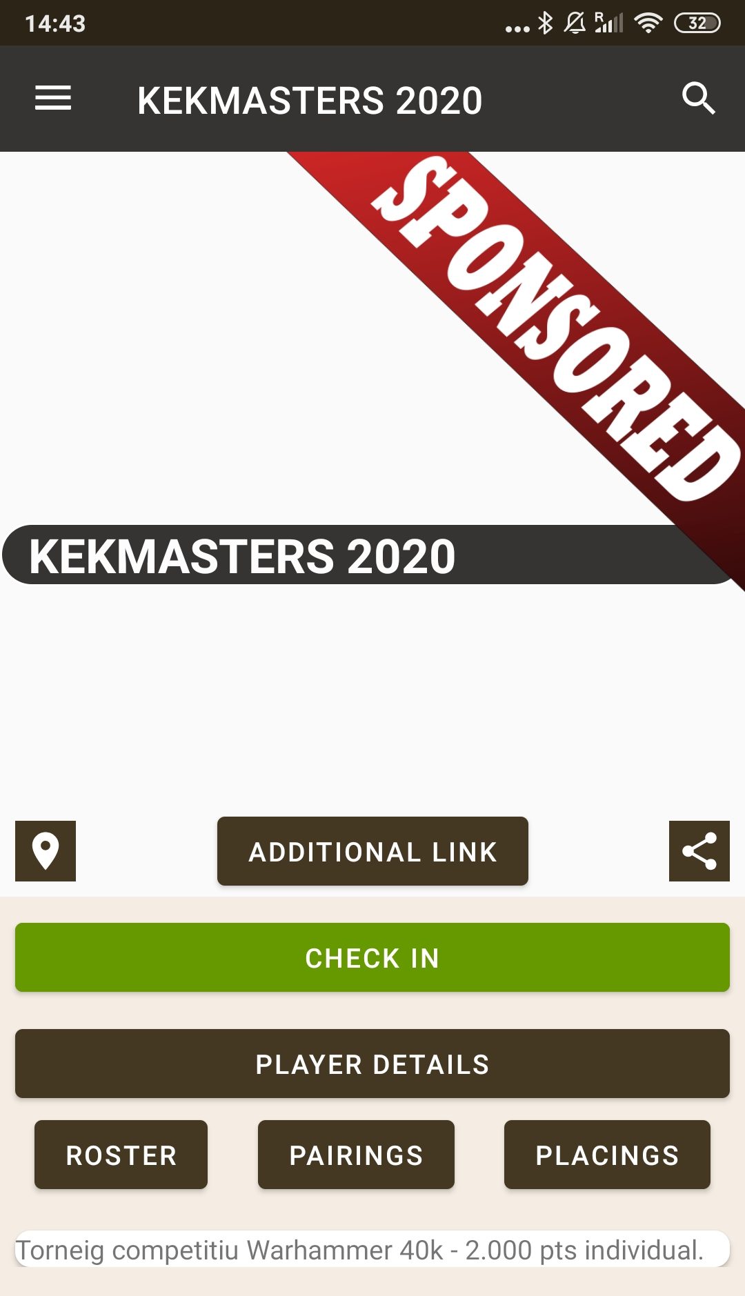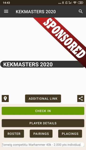 12. Vemos el mismo menu que anteriormente pero con diferentes opciones. El Check no se puede realizar hasta 48 antes del evento. Vamos a PLAYER DETAILS.